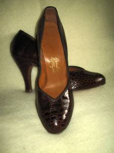 This is one classy looking pair of alligator shoes that have never been worn, courtesy of a UK eBay seller who is reluctantly selling this beautiful pair because they do not fit. Oh, I have been there…it’s better to just let them go. π Check your foot measurements, ladies, because this pair is awesome!