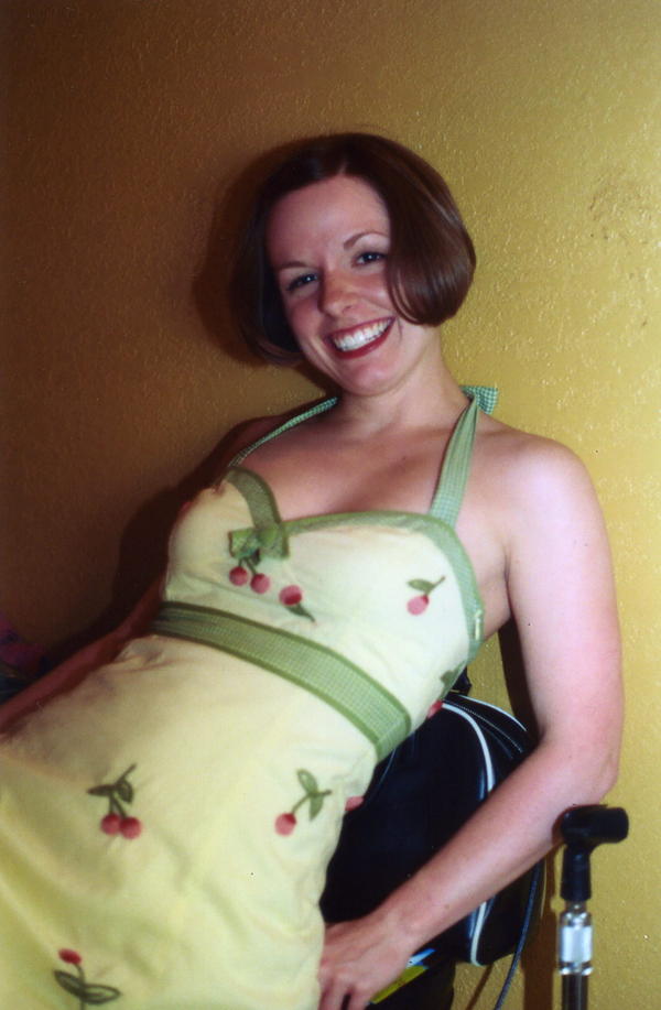 I am showing a picture of me wearing this dress, circa 2003, because the dress form in the eBay auction picture doesn’t really fill out the dress and it’s always better to see it on real person. If I hadn’t sworn off halter dresses, I’d keep this auction to myself. 😉
