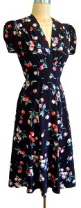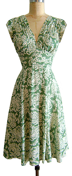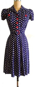 My mother, who grew up sewing her own clothes with the clean lines of 1960’s clothing, has made me a few dresses from vintage patterns, but after seeing her worry about messing them up and fretting over the tucks and gathering (they came out beautifully, Mom!), I have been able to give her a bit of a break, thanks to retailers and dressmakers like Trashy Diva. I should also mention that finding suitable fabric to make these clothes is very difficult, if not impossible in North Carolina. That Trashy Diva is able to find such wonderful fabrics for these dresses is truly amazing to someone who doesn’t live near Mood or some other purveyor of fine fabrics.