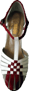 I love the t-strap profile, of course, but then there’s this added element of fabulousness with the separate strips of leather around the toe woven together to create a checkerboard pattern in white leather and red suede (they also come in white and black). I can imagine the sections allow for additional movement, but there’s enough leather here that they can protect you like a closed toe shoe. Love all of this – so clever!
