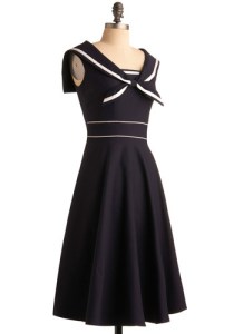 My interest in all things sailor suit was piqued by this adorable nautical dress that popped up on Mod Cloth today. Another Stop Staring creation, this Luxury Craft Dress is fit for a swing dance or a cruise in one of those wooden motor boats from the 40’s or 50’s…yes!