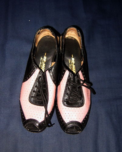Continuing with the shoe theme and the pink theme, I’m posting this eBay auction for a pair of Remix Open Toe Spectator Wedges in pink and black, size 7-8. I’ve never seen this color combination before, but I like it. The shoes are a size 8, but the seller says she wears a 7 1/2 wide and that the size felt more like a 7 to her. Starting price is $20, but the buy-it-now is $50! $50 for a pair of Remix shoes? You know what to do.
