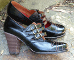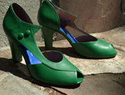 When it rains, it pours, and it’s pouring gorgeous shoes this week. Remix has launched two new styles: the Eva, a Picasso-esque work of art for your feet in green and black; and Amelia, a late 1920’s/early 1930’s Mary Jane heel with three straps in black. The Amelia is cute and sturdy, but the Eva is to die for…they should be paired with that villainess dress I found and wreak havoc on a small city with their sheer awesomeness.