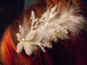 I’ll credit Philly dancer Caroline Gleeson for the tip about May Bell Creations, the Etsy store of Caroline’s friend, Mary Hadzimichalis. Mary has created some really lovely holiday hair ornaments, some that are more floral (like that elusive poinsettia I’ve been wanting) and others sparkle, and most do both. I think she’s done a fantastic job with the materials and making the pieces look festive without being kitschy. Here’s what I love: