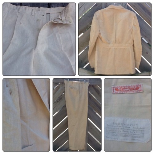 In these warmer days, a Palm Beach linen suit is the perfect way to dress up without sacrificing too much comfort. Right now, eBay has just such a suit from the 20’s/30’s, with a starting bid of $100.00. Check out the action back on that jacket!