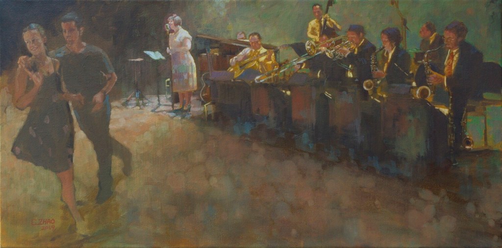 I’ll leave you with this painting, featuring yours truly on the mic, by Conan Zhao – you can pick up his dancer/jazz-inspired paintings in their original form or on prints, bags, phone cases, and more. 😉