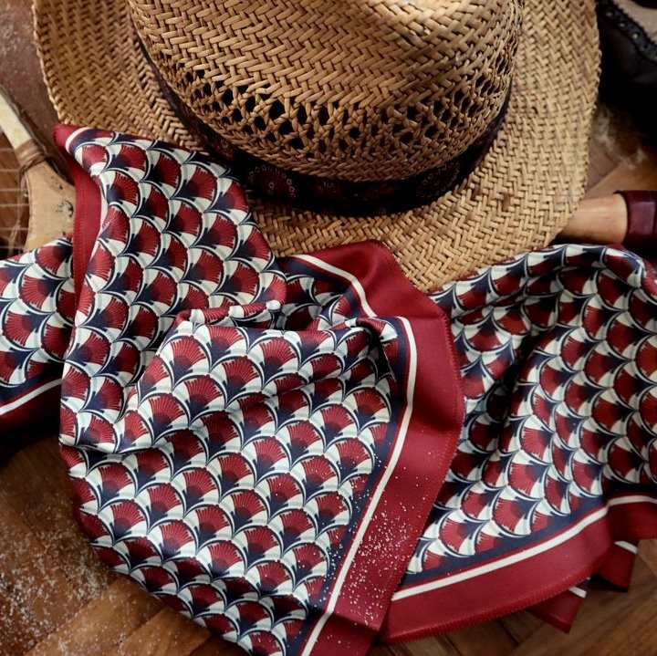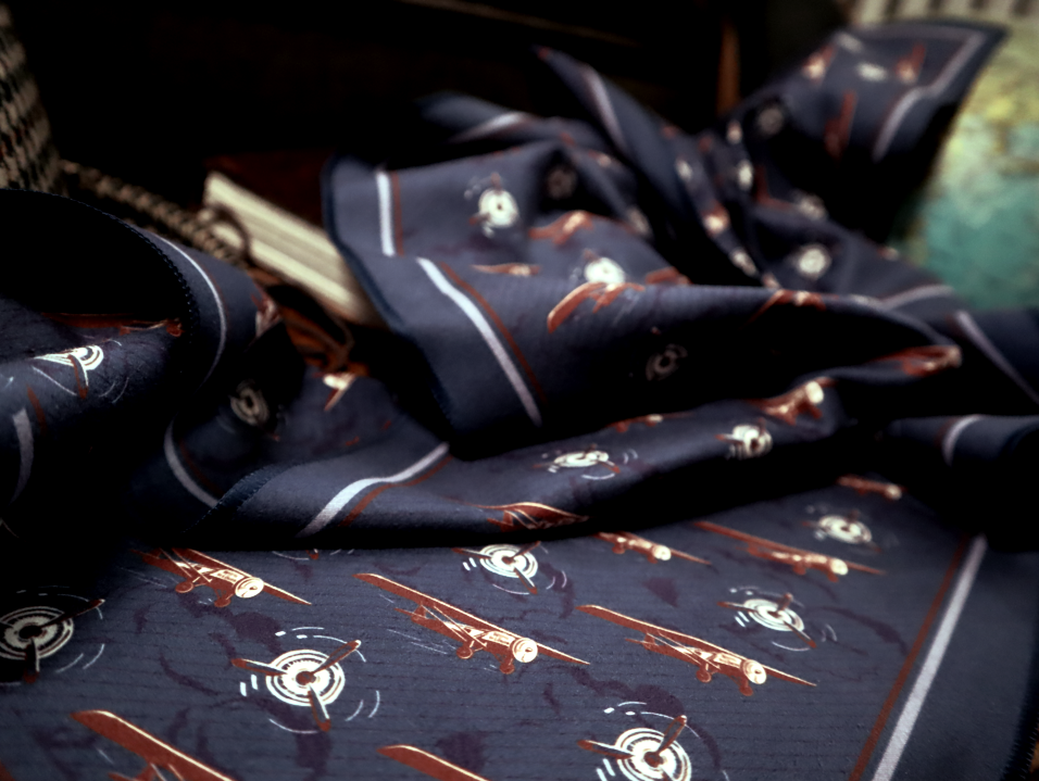To answer my question above, the towel is something more – it’s both a functional, sweat-wiping, absorbant microfiber towel that is incredibly soft and smooth, as well as a lovely fabric statement of style. Benedikt drew inspiration from classic menswear, the silk scarves that were often seen around necks and draped over lapels of the past and present. For his inaugural towel offerings, he chose shades of red, white, and blue, which coordinate with a lot of clothing, and drew his themes from two popular swing era topics – aviation and Art Deco design.