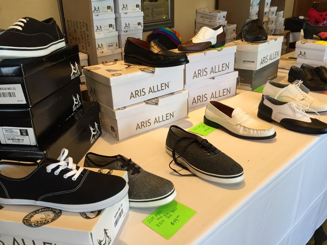 Remix’s new men’s shoeNext in line as we travel down the ABW ballroom hallway/vendor area, is Remix Vintage Shoes, and we should all thank the heavens that owner Philip Heath comes to Cleveland with a metric ton of shoes for us, because (as far as I know) only ABW and Viva Las Vegas have made it worth Remix’s while to come outside of their retail location and shipping center in California. New this year is a black and off-white version of the popular Balboa style shoe, which is also available in a rainbow of color options and it was delightful to see them all in a row. Also new is a lower heeled version of the Ritz called the Charleston, which looked much more dance-friendly with 2 3/8 inch heels as opposed to 3 1/4 inch heels. Last, but certainly not least, the new men’s shoe features a fantastic array of perforations and brogueing, just perfect for summer!
