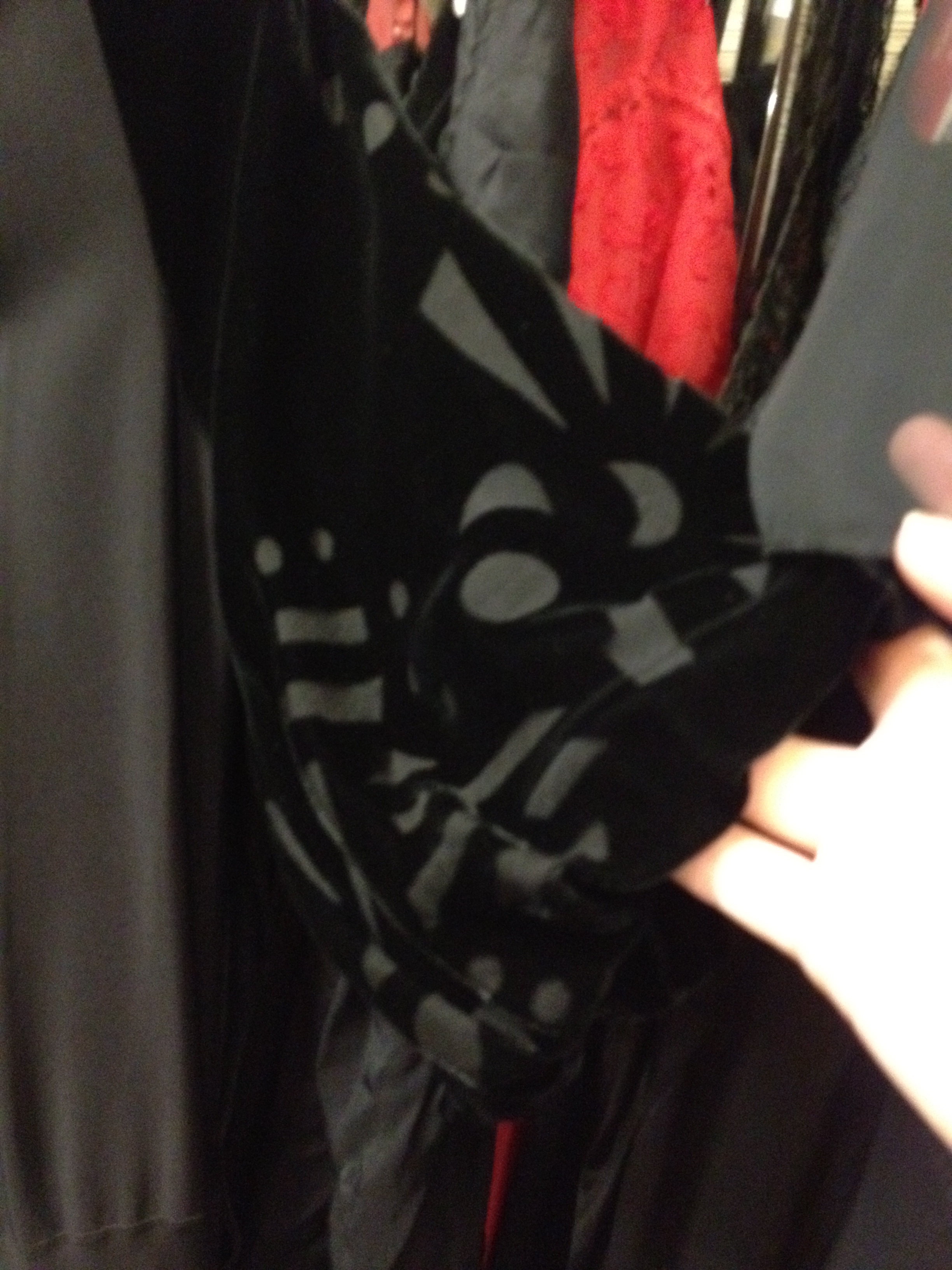 My next stop was Chelsea Costumes, which I had somehow managed to miss on all prior visits to Cleveland. The sheer volume of square footage packed literally floor to ceiling was overwhelming in a way that only a disorganized Goodwill warehouse of great magnitude could rival. The racks were three tiers high, with the top two racks reachable by rolling staircases located on each aisle. Adding to the library feel of the place, the ends of the racks were labeled by decade range. I searched in vain for the early vintage clothing and had to ask where it was located – at the end of one of the 1950’s racks was a single rack with 1940’s clothing. I found a couple of items I liked, but they had fatal flaws (fading, shredding, etc.). I’d say it’s definitely worth a look, especially if you are into later decades, and it’s an absolute must if you are looking for menswear – I saw just about every size, shape, color, item, and a range of seasonal weights, with a massive selection. You do have to be a digger to make this worthwhile, but the prices are good and worth the dig.