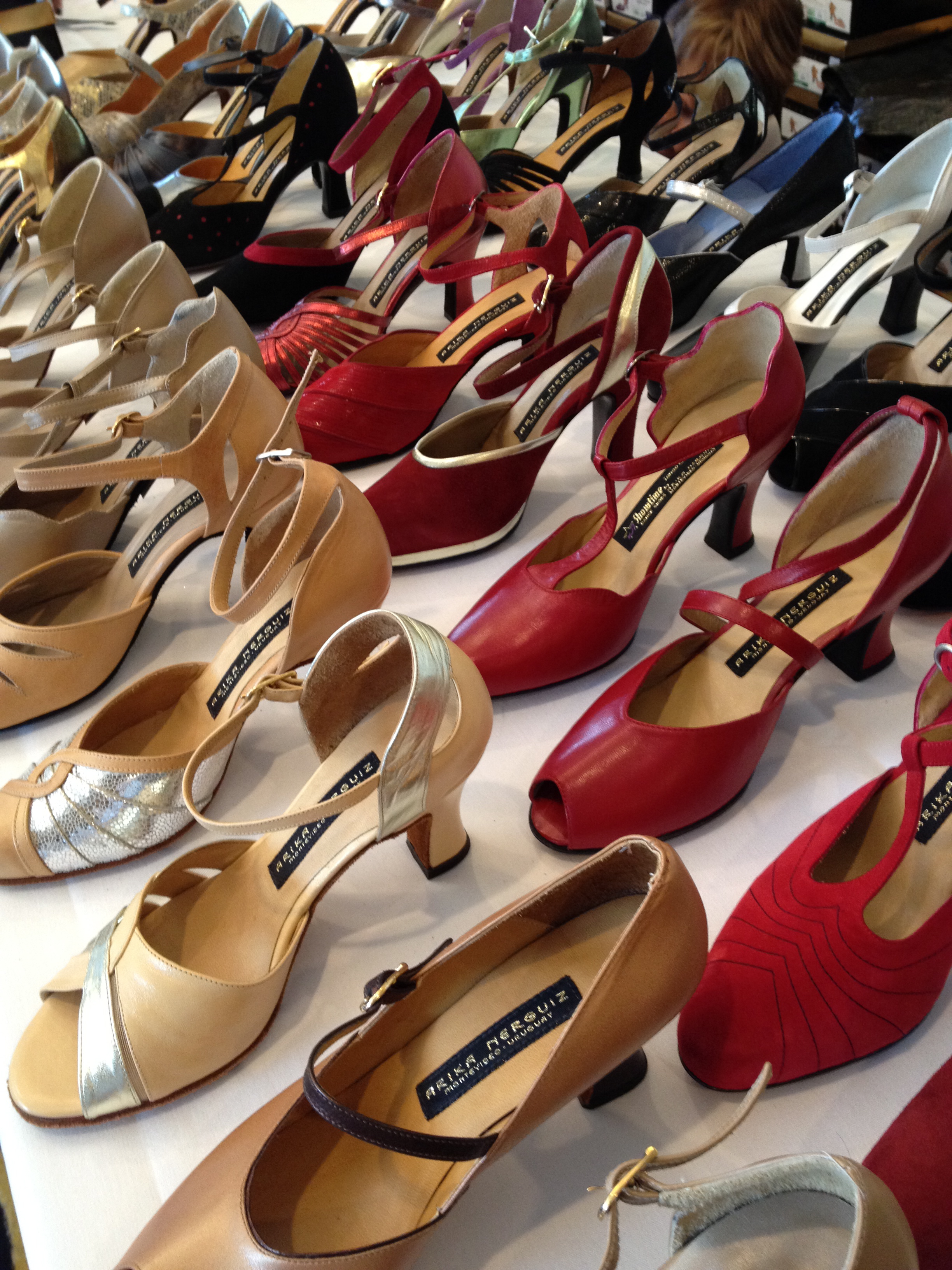 Finally, Dancestore.com made an appearance with most of their line of shoes. I liked that they had a set of “try-on” pairs that you could put on and take for a spin during one dance. It helps you decide, cuts down on wear and tear of new pairs, and also gives you an idea of how they will feel once they are broken in. Great idea!