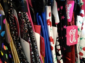 Bettie Page Clothing made its debut as a vendor this year, spearheaded by the lovely Shannon Butler, who is now the manager of the Bettie Page store at the Mall of America in Minnepolis, MN. Shannon brought another innovative way to make sure everyone got to try on the clothing and get the sizes they need – she kept a stock of the dresses, shirts, and skirts she brought as try-ons and once you decided what you wanted, she called the Mall of America store, placed your order, and it was shipped to you (sometimes that day!) free of charge. In addition to all the adorable clothing, she brought these great adjustable belts that are the perfect dress belt, for when that vintage dress comes without a belt or maybe you lost the belt or want to add a belt…regardless, good, skinny dress belts are hard to come by and these babies are only $10 and come in several handy colors.