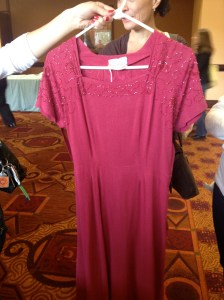 Next in the lineup was Sweet Lorain, which is my favorite vintage shop in Cleveland. To call it a shop is really an understatement, it’s almost a warehouse, definitely a department store, and you can get lost in there for hours amongst the clothing, furniture, kitchen wares, records, Christmas decorations, and on. Of course, for ABW, they pull a selection of garments with dancers in mind from the 1930’s through the 1950’s so that you don’t have to do the digging, it’s already been dug out for you and is sitting in the hallway of the event. My story this year is that Andy Nishida and Rita Shiang (dancers and organizers of Richmond, VA’s Jammin on the James) had come to Cleveland a few weeks earlier for the World Congress on Art Deco and had scouted a 1920’s dress for me at Sweet Lorain. 1920’s dresses are hard for me because of my body type, so I was hesitant to phone in the purchase, even though Rita knows my size. I show up at ABW with this texted photograph of a dress and the owner, Redwin Lewis, knew the dress immediately, still had it, knew it would be perfect for me – and it was! Sometimes vintage shopping is easy and sometimes it takes a few steps to find a dress a home.