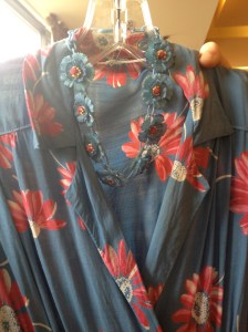 A gorgeous 1940’s rayon print dress at Flower Child.