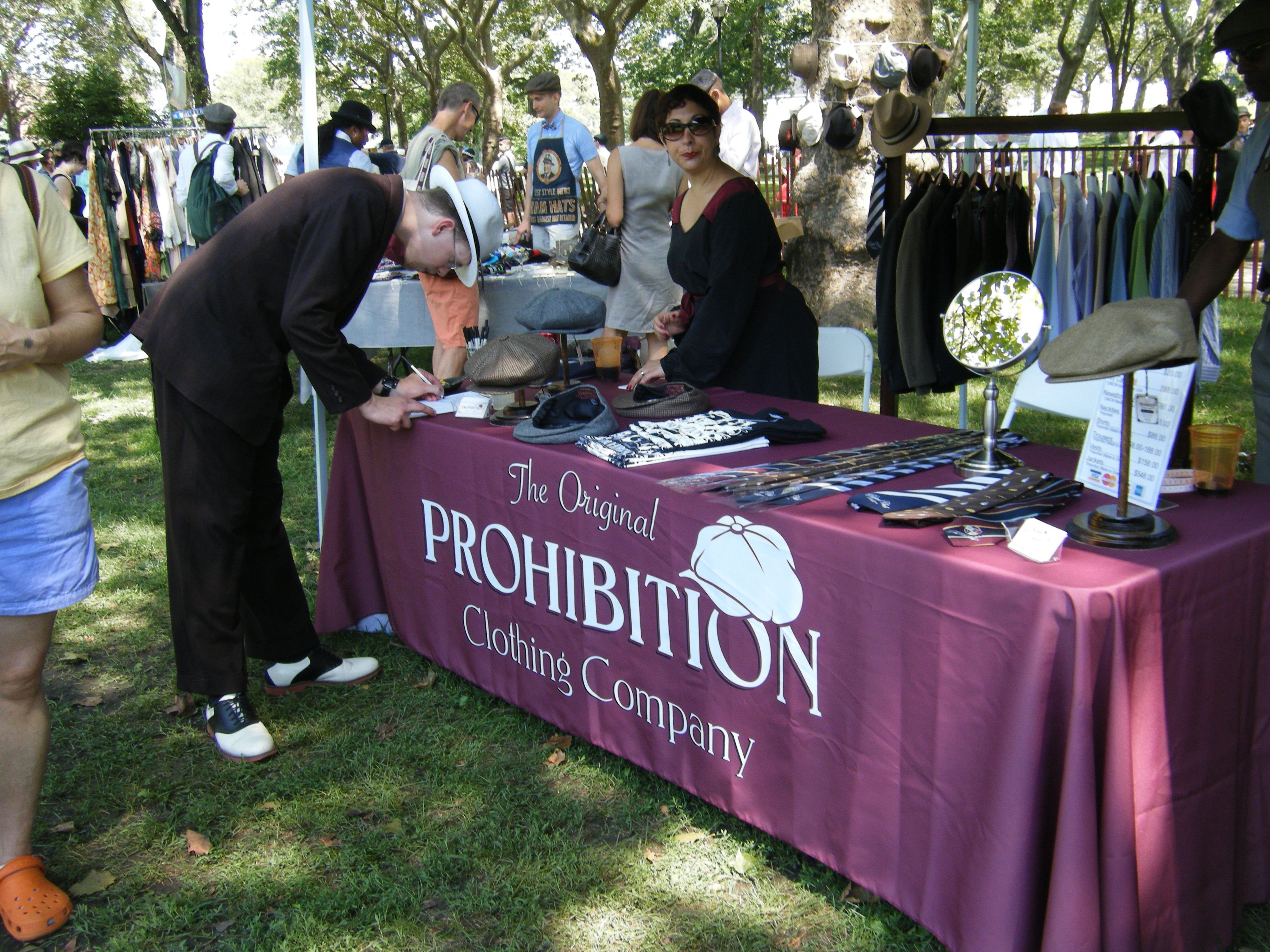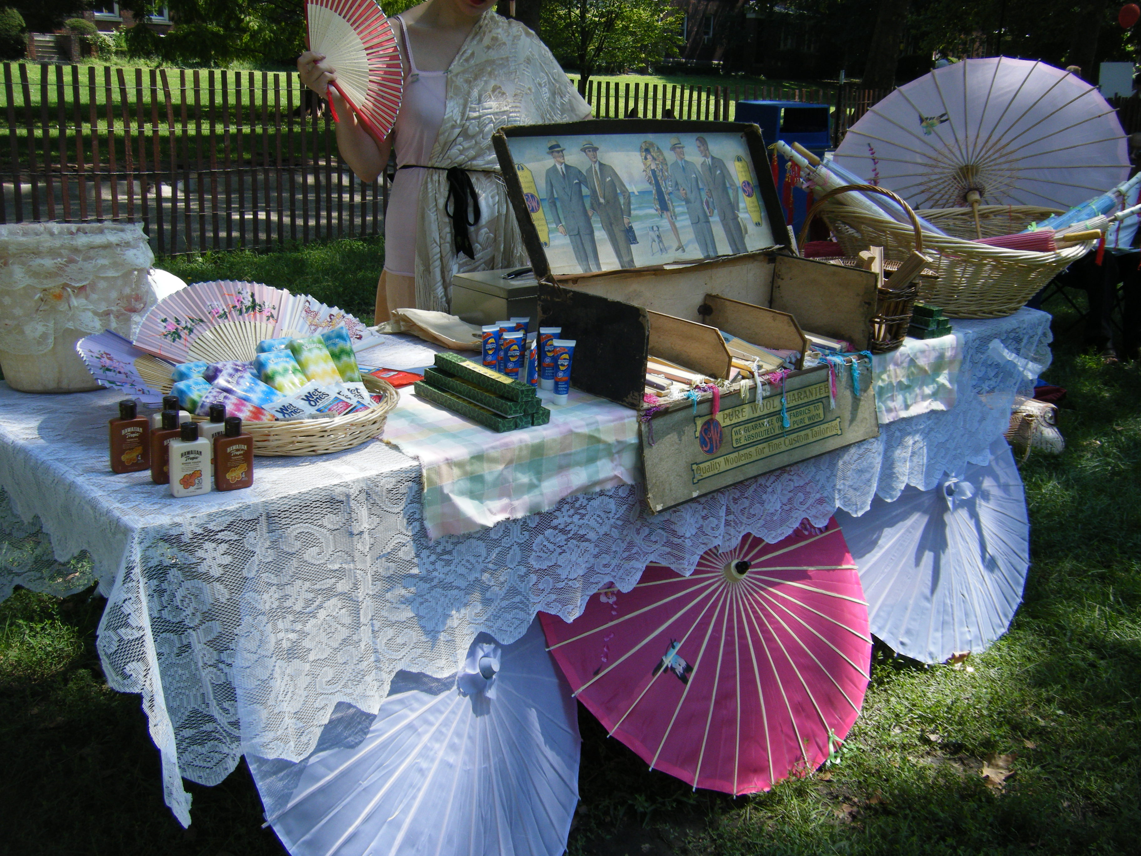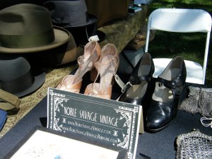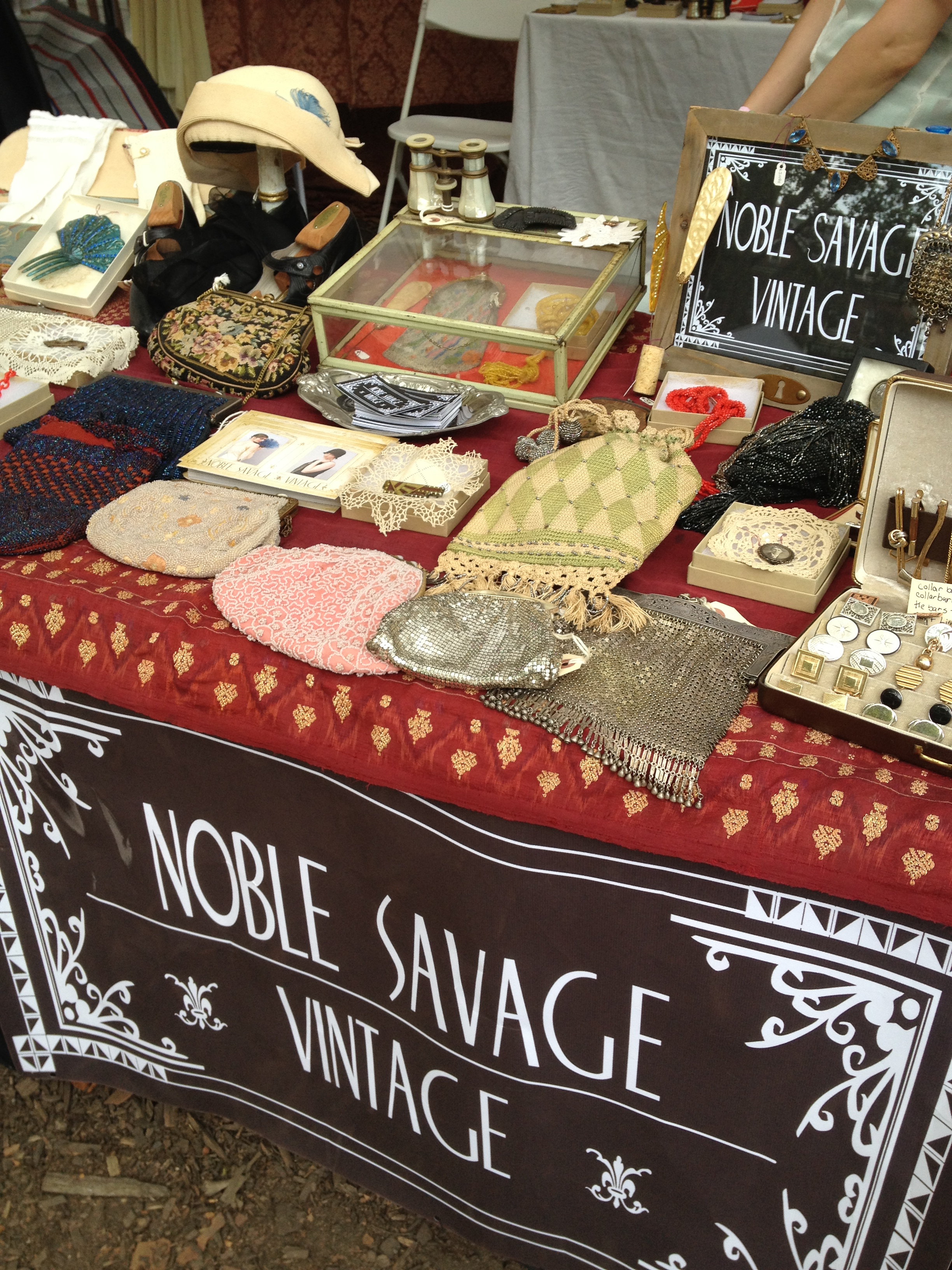 After all this menswear, I arrived at my favorite vendor of the weekend, Noble Savage Vintage, who displayed exclusively pre-1940’s clothing and accessories for women. This table and rack were a dream come true, with beautiful beading, gauzy dresses, satin 1920’s shoes, and vintage lace galore. My friend Elizabeth picked up a wonderful 1930’s dress in a gauzy chiffon floral that was perfect for Day 2 of the lawn party.