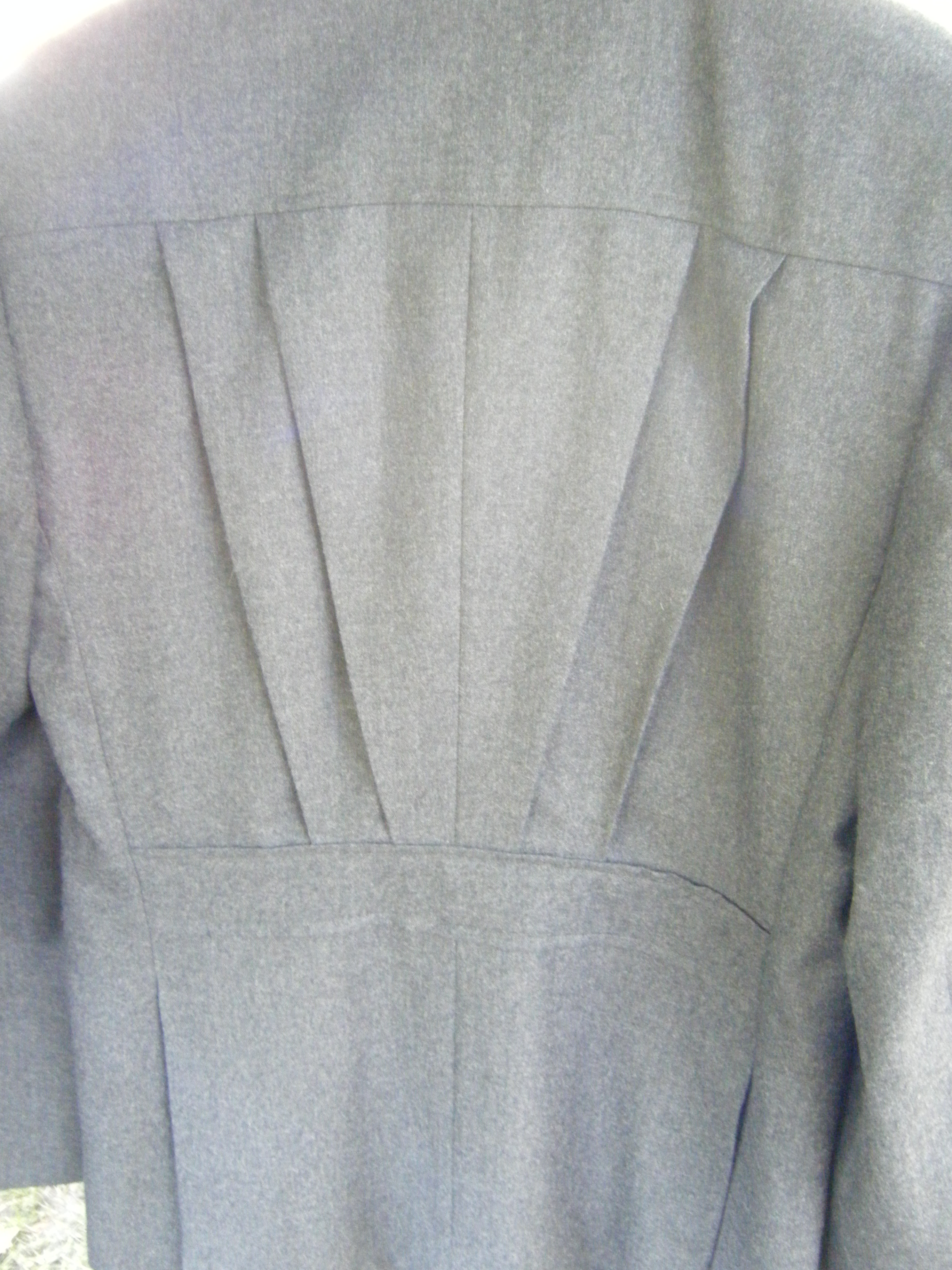 I was given the incredible opportunity to examine Genevieve Grazis’ performance clothing, including the famous Beach Clip dress, and was invited to talk about the dress’ construction and details in front of the entire event as part of Kate Hedin and Bobby White‘s presentation and demonstration of the dress. While everyone is gaga over the 11 godets that, combined with 1930’s satin, make this dress spin like a dream (and rightly so!), but my favorite part of this dress are the sleeves – a triple pleats, both front and back, along the arm hole seam with two piped seams straddling a panel in the middle of the sleeve. The result is a puffed sleeve created by divine architecture.
