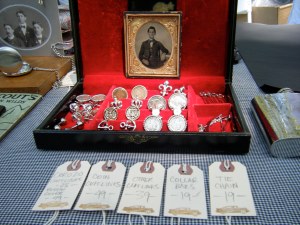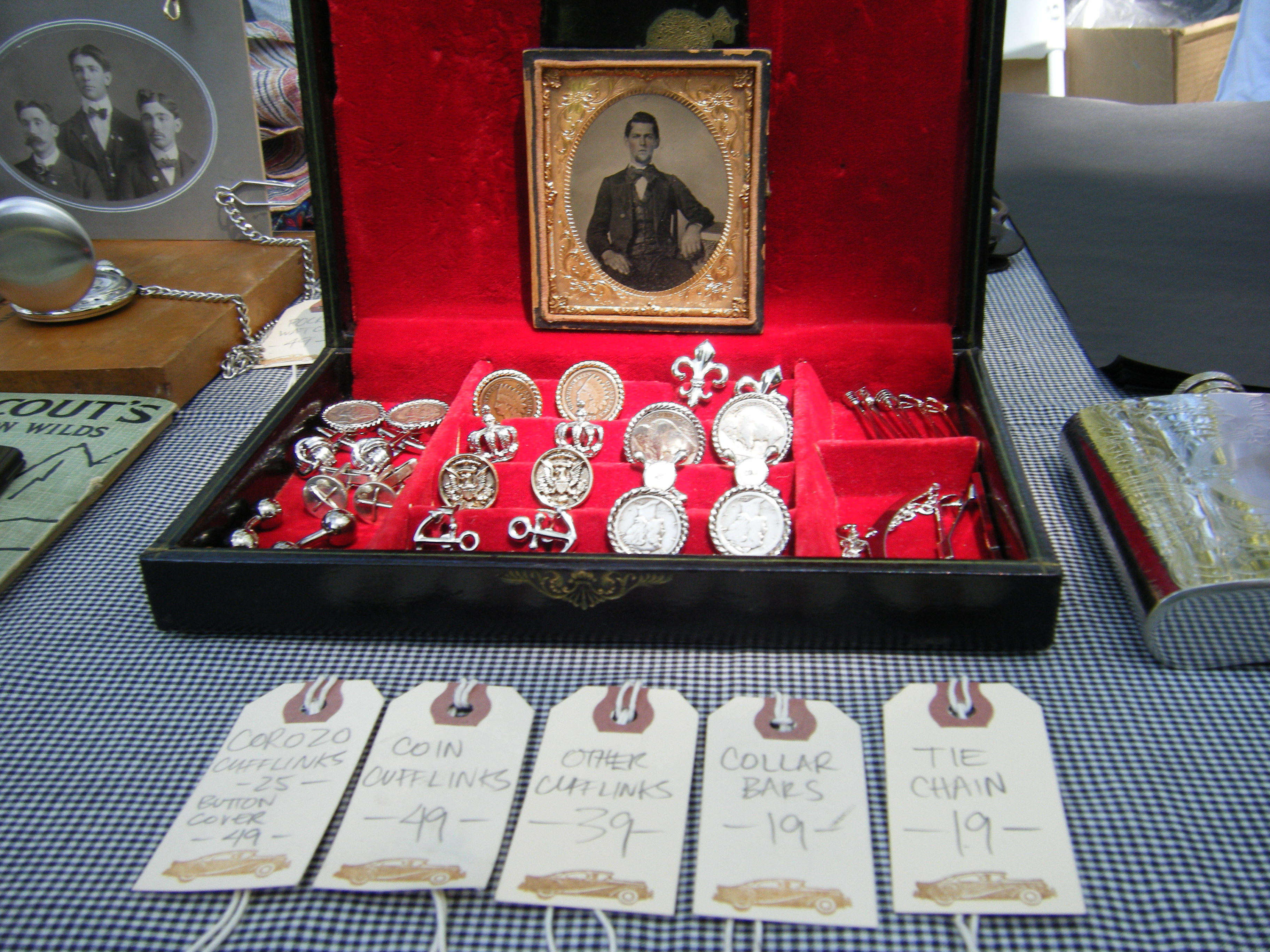 The Fine and Dandy Shop.com had a wonderful showing of men’s accessories – ties, pocket squares, handkerchiefs, cufflinks and other man jewelry, flasks, pocket watches, and even a vintage Boy Scout’s guide. Fine and Dandy has a fairly comprehensive website and I’d recommend that you gents check out their fantastic selection, including their ties, which are made in New York. See photographs below.