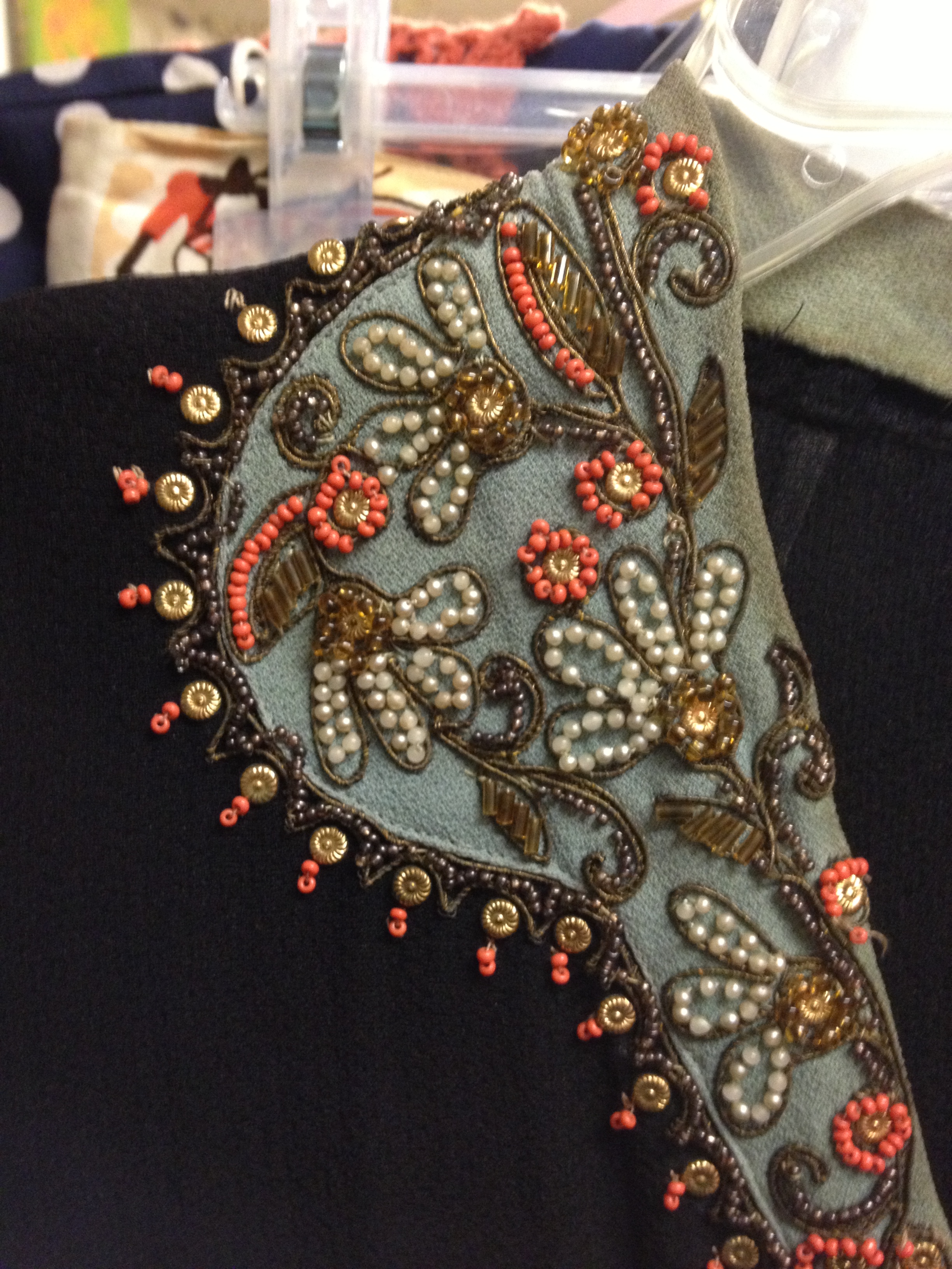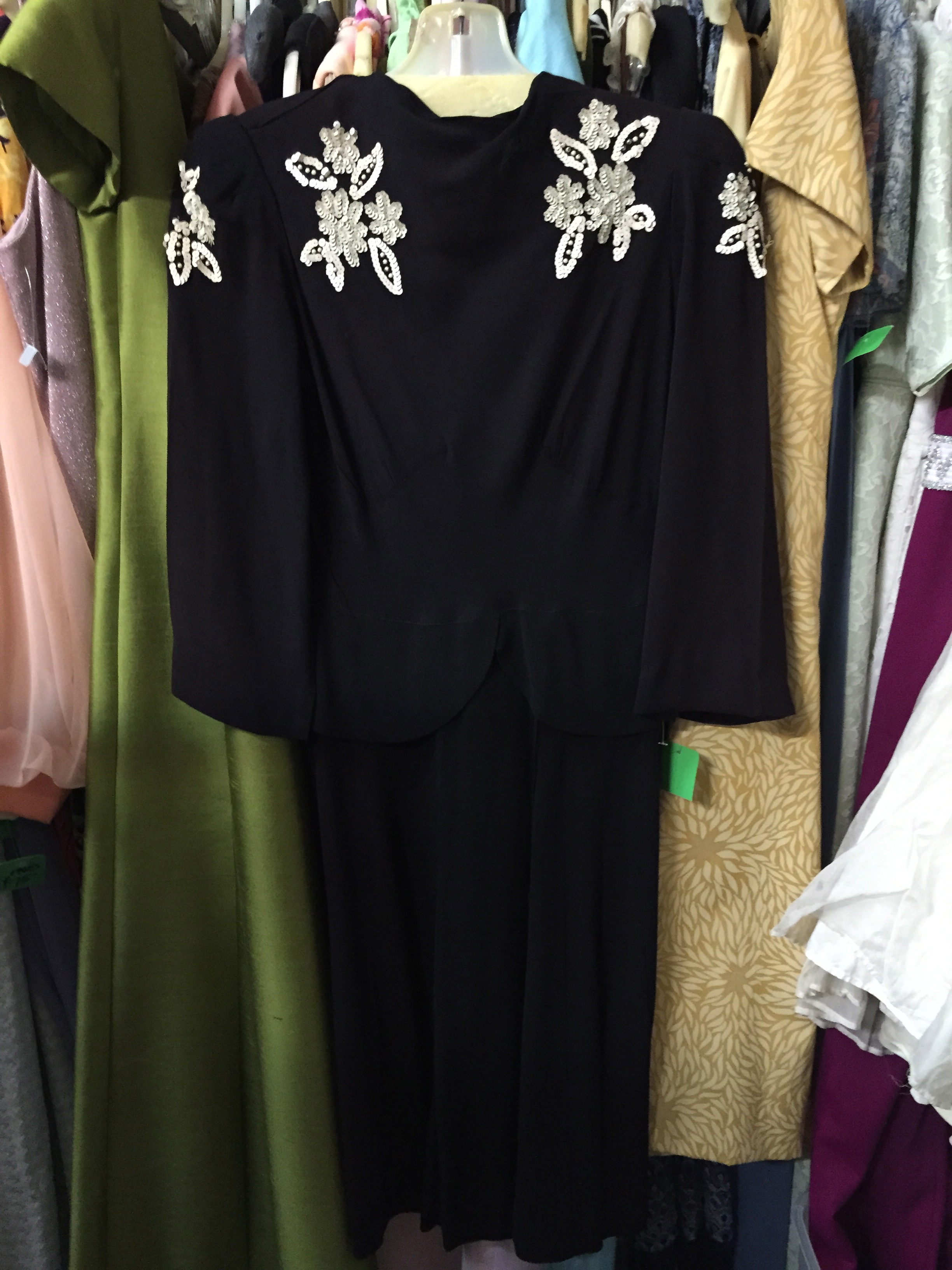 Beth’s find of the day – a gorgeous 1940’s gown with floral appliques and overlays