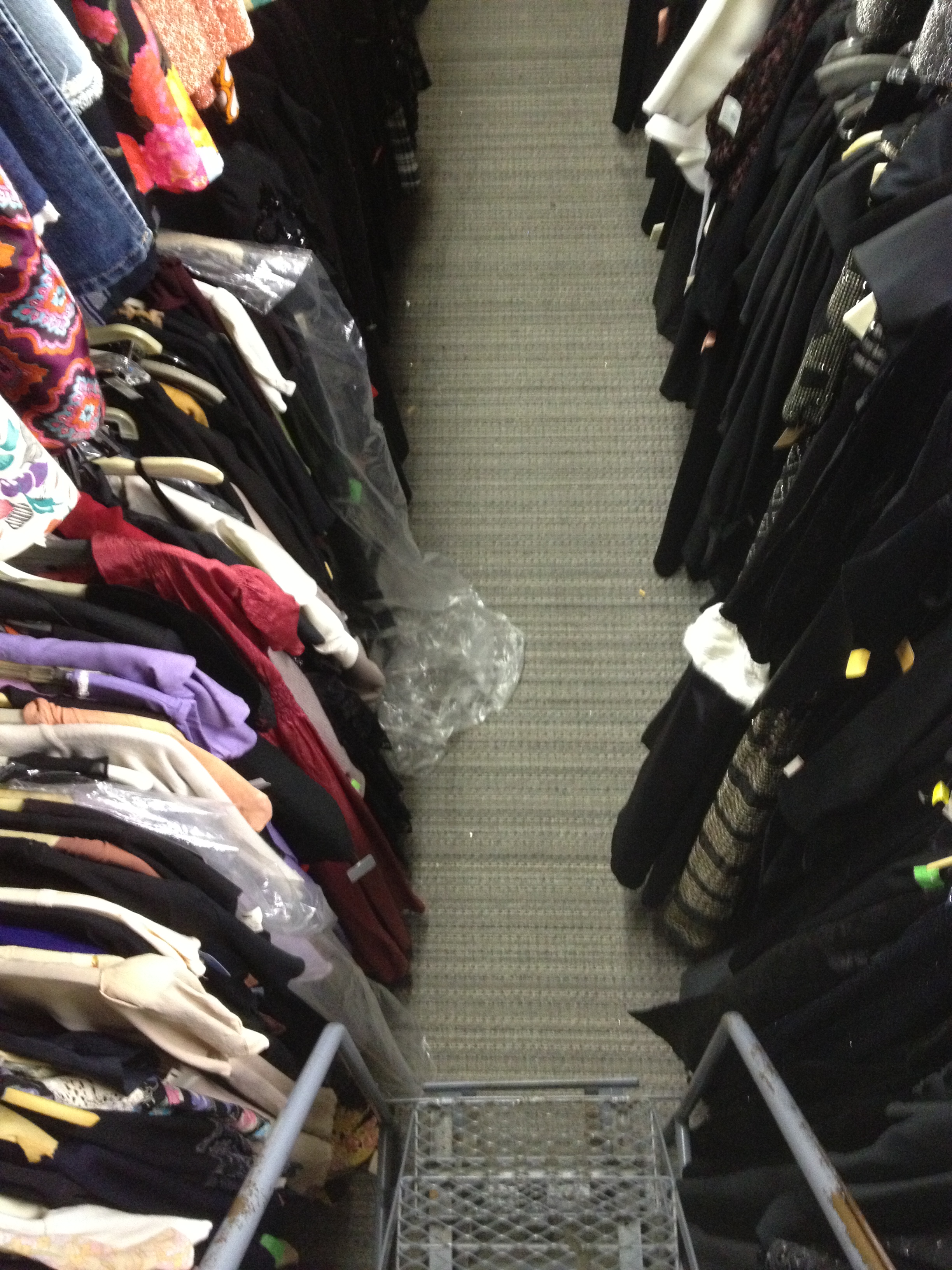 The view from the top of one of the rolling staircases at Chelsea Costumes