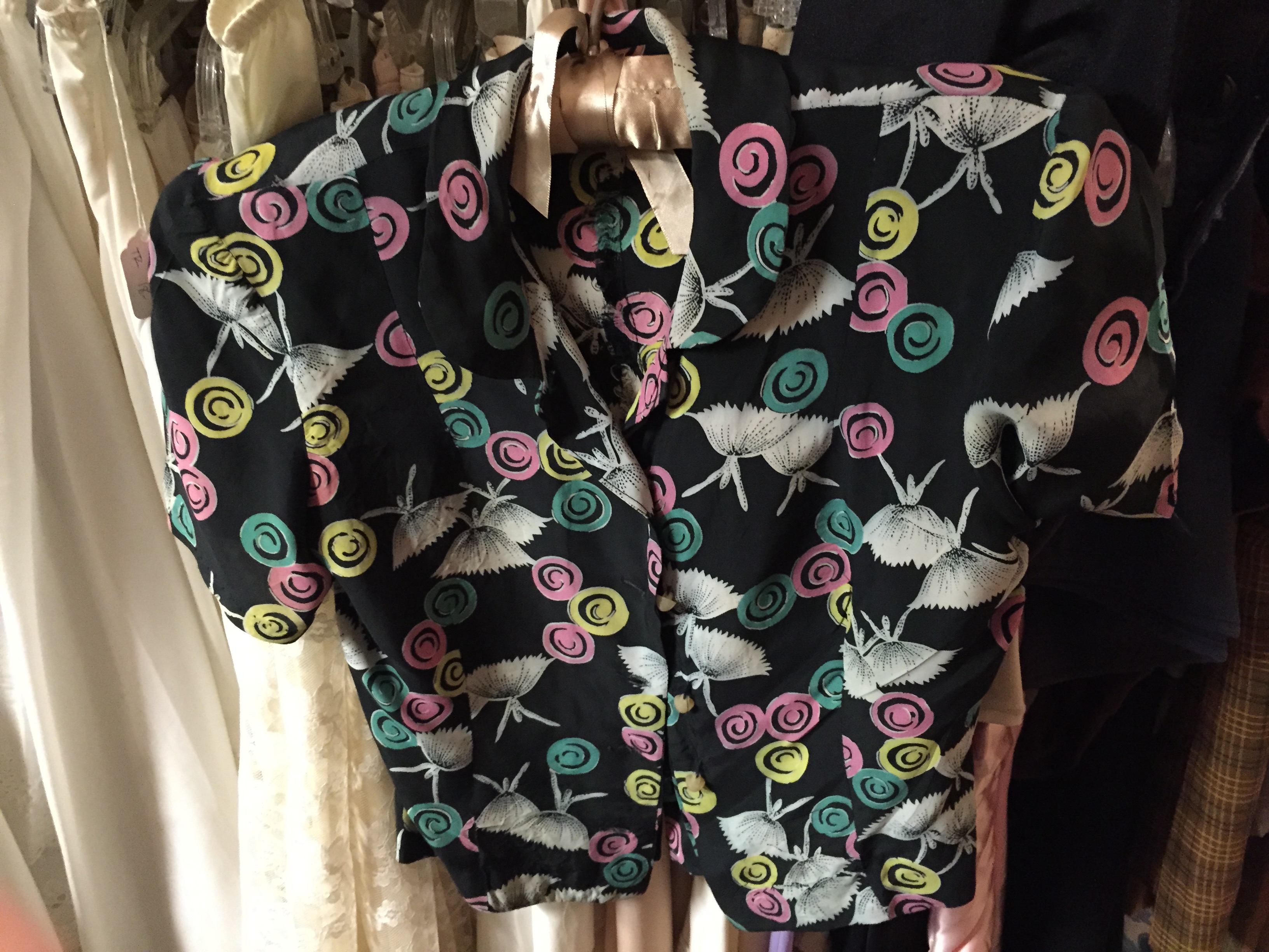 A gorgeous 1940’s rayon print dress at Flower Child.