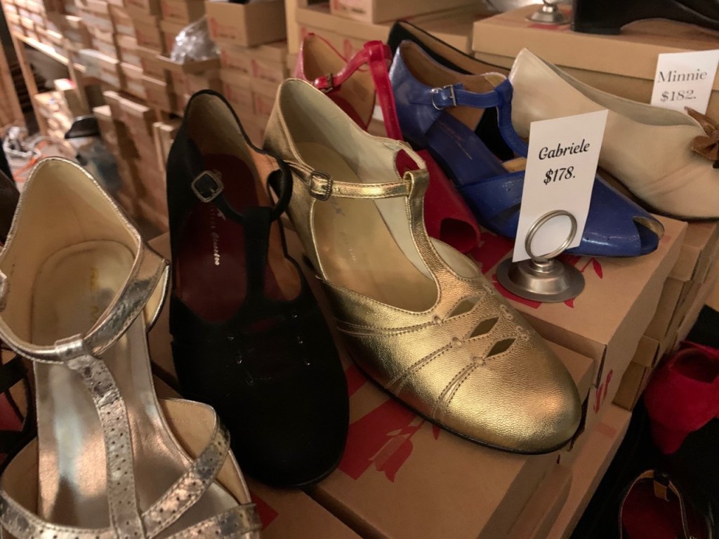 Saint Savoy Riviera shoes in so many lovely colorsSaint Savoy’s Grand Prix in neutrals – ready to be the work-horse of your dance shoe wardrobe.Bandini St.’s array of headbandsLove this print on a peplum’ed Loco Lindo dressCheerful yellow trousers from Swingbird FashionsWrap dress goodness from Swingbird FashionsI love the little kiltie detail on Applejacks’ Newport shoeExcited to be here, got some loot!Men’s trousers by Swankys Vintage, giving me pants envy…Racks of candy colored shirts, by Swankys VintageThe brand new gold Opera by Re-mixThe Minnie shoe just absolutely kills me with adorableness
