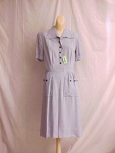 Pink crepe with embroidery at the neck.30's/40's day dress in a rose printPaisley/flower print dress with tie sleevesLavender 1940's dress with button detail