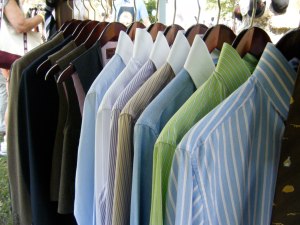 This year, EBC grew from one vendor to four vendors. The solo repeat vendor, and one that is near and dear to my heart, is the Vintage Collective (Andi Shelton, Claire Villa, and Laura Churchill Pemberton), who paid attention to what was bought and who purchased it last year, then went out to their sources to find even more of these vintage goods that swing dancers wear. The result was four large racks of clothing from the 1920’s through the 1940’s, both men’s and women’s apparel, three tables of accessories, and a giant shoe rack. The Vintage Collective was only set up for one day, Saturday from 9 a.m. to 9 p.m., and I was there with my fellow vintage poachers at 9:00 sharp, freshly rolled out of bed and ready to commence with the hunt.
