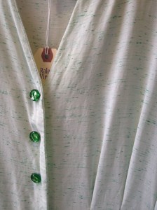 Part of Chatterblossom’s vendor areaIf your name is George, this is your lucky day – at ChatterblossomEarrings made from cute buttons, by ChatterblossomRidiculous socks at Raleigh VintageAdorable dress at Raleigh VintageTies at Raleigh VintageRaleigh Vintage always has a few good sweater vests!This neckline! At Raleigh VintageYellow men’s shirt with top stitching, at Raleigh VintageMiss Sharon Crawford, busy with a custom piece.A box of jewels, which can become the basis for a Creation by Crawford.