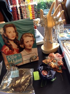 Let’s start on one end of the line and move to the other – first in the lineup was Chatterblossom, who has become my own personal vintage millinery Philip Treacy. The gorgeous millinery was on display, as well as lovely jewels, flapper headbands, and a nice selection of menswear accessories. If only women’s dress shirts didn’t button from the opposite side, a tie clip with vintage microphone would have certainly left with me!