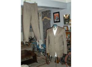 This kind of thing shows up so rarely that I couldn’t resist posting this set of a Norfolk jacket with matching knickers – 2 pairs! If you happen to rip a hole in the seat of your pants doing something awesome on the dance floor, you’ll have a spare. The size of this is very small for men, a 35 chest for the jacket and a 28 inch waist on the knickers, but those are also pretty standard lady sizes, so this little suit gets filed under ladies and gents. Whoever wears this is going to look badass.