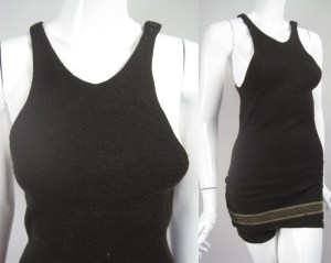 Polish up the nine iron because it’s time to get your knickers on and hit the links…or the dance floor. EBay seller hotclubduparis (location: Savoyville, Italy) has posted a matching vest and knickers set in a lovely menswear stripe with a little red in the stripe. Knickers are perfect for showing off your clever socks, no? Whoever wins this auction will be my hero.