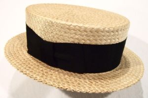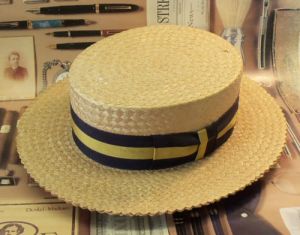 “Boaters were popular as summer headgear in the late 19th century and early 20th century, and were supposedly worn by FBI agents as a sort of unofficial uniform in the pre-war years…Being made of straw, the boater was and is generally regarded as a warm-weather hat. In the days when men all wore hats when out of doors, “Straw Hat Day”, the day when men switched from wearing their winter hats to their summer hats, was seen as a sign of the beginning of summer. The exact date of Straw Hat Day might vary slightly from place to place. For example, in Philadelphia, it was May 15; at the University of Pennsylvania, it was the second Saturday in May.”