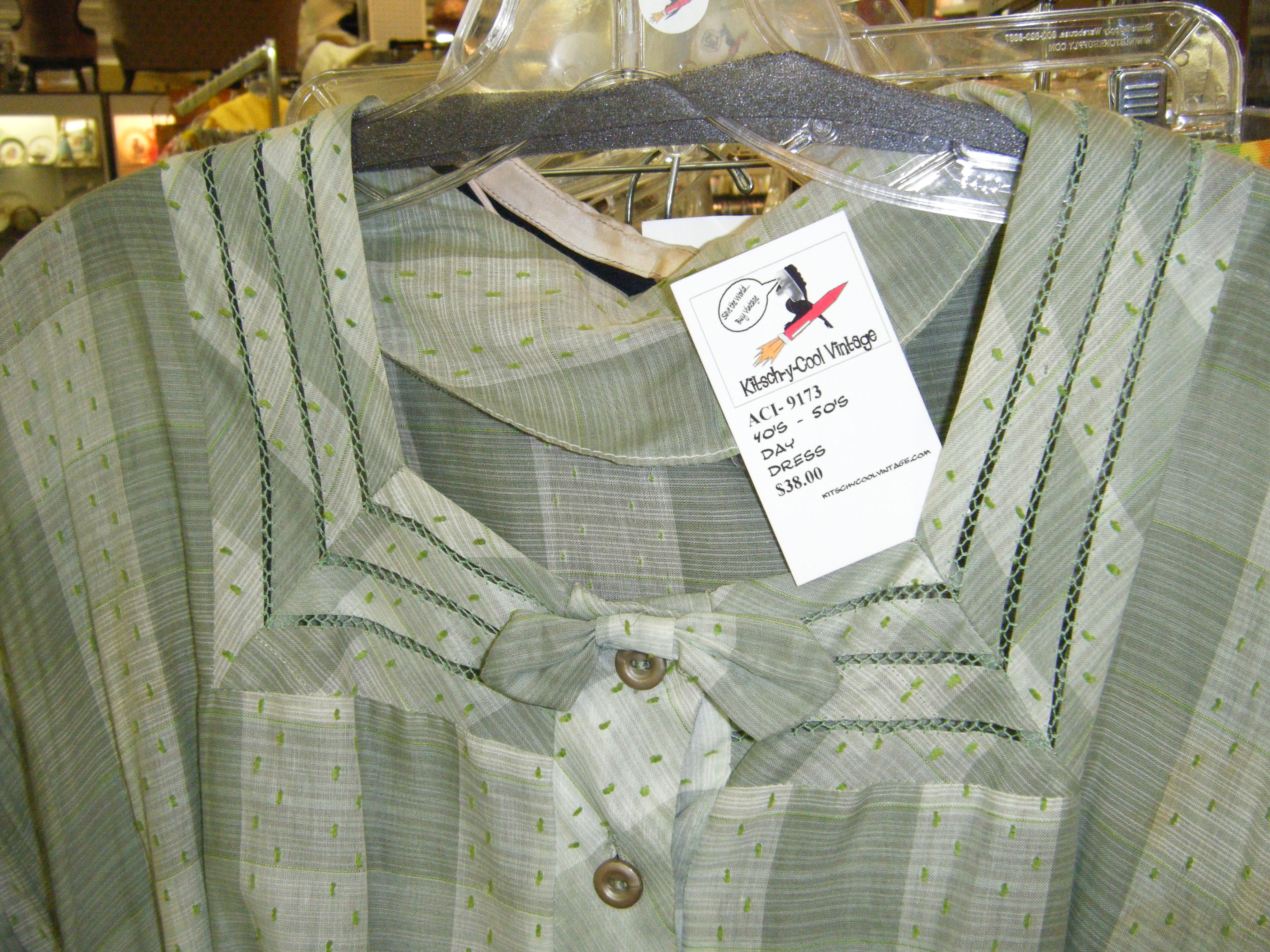 Owner Sara Spissu opened Gibson Girl Vintage a few months ago and she’s already got a full shop with more inventory coming in all the time – every time I go in, there’s new things to see, which is all very exciting. Gibson Girl has both men’s and women’s clothing, as well as a good bit of furniture and housewares. Like Dolly’s, it will mostly be 1950’s-1980’s clothing, with a sprinkling of earlier clothing – there’s a lovely yellow lace 1930’s dress and some hawt black 1940’s pumps (size 7.5) in there right now that I wish fit me! It’s about a 20 minute walk from the Durham Armory – if you decide to take that hike, there are some other great things within this block of the city, like the Durham Co-op Market, Grub (a yummy restaurant), and a Joe Van Gogh coffee shop.
