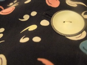 A close up of this great rayon print and the button detail are the eye-catchers