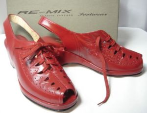 It’s been a while since I’ve posted any Remix Vintage Shoes from eBay, so here are a couple of pairs of Greta wedges at a fairly reasonable price – red in size 9 and black in size 8. Enjoy!
