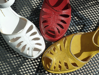 I see a couple of pairs of saddle shoes thrown in the mix and, though most modern associations are with the 1950’s, the saddle shoe’s popularity boomed in the decades prior to the 1950’s, as well. Most saddle shoes I see today have a crepe sole, which isn’t my favorite for dancing, but Re-mix carries them with a leather sole. I’d consider giving this Restricted pair from ModCloth a whirl because they have leather interiors (for my sensitive feet), what appears to be a flat synthetic sole, and because the blue/brown color combo is awesome. Then I go and find this yellow and white Chelsea Crew pair…I need to stop while I’m ahead.