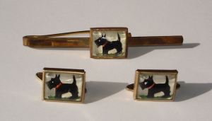 I’m not sure if Lindy Dandy and Knickerrocker would approve, but I think this vintage set of scottie dog cufflinks and matching tie clip is adorable. Pair it with tweeds and some argyle socks and you have a winner in my book. 😉