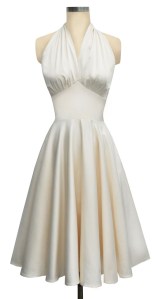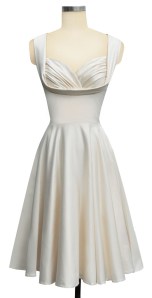In another stroke of genius, the New Orleans-based Trashy Diva has launched a bridal collection, featuring some of their most popular dress styles in white stretch cotton blend satin. This collection is perfect for so many things, but especially for dancers who may want to change from their fairytale wedding gown into something more danceable for the reception, or maybe you just want something simple, beautiful, and comfortable to wear throughout your wedding. The choice of fabric here appears ideal, as well, with a lovely satin sheen for a slightly more formal look, but enough stretch to be able to move and dance comfortably.