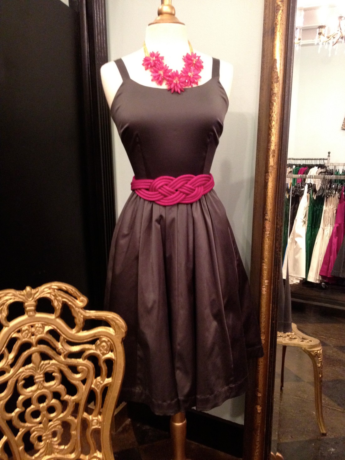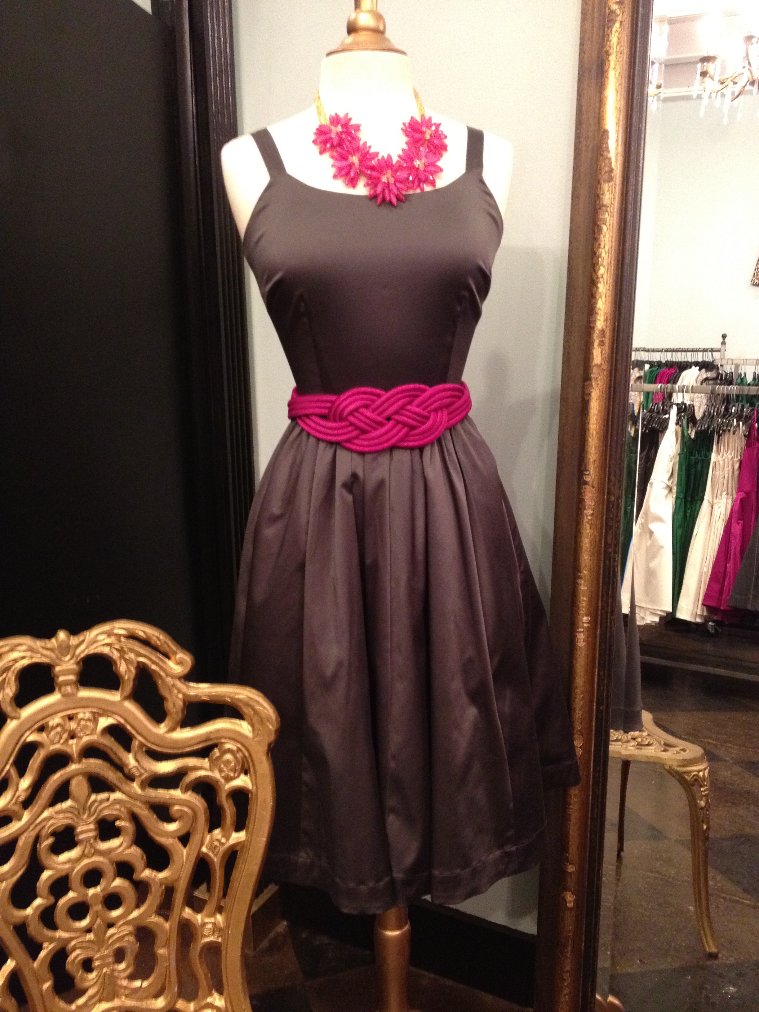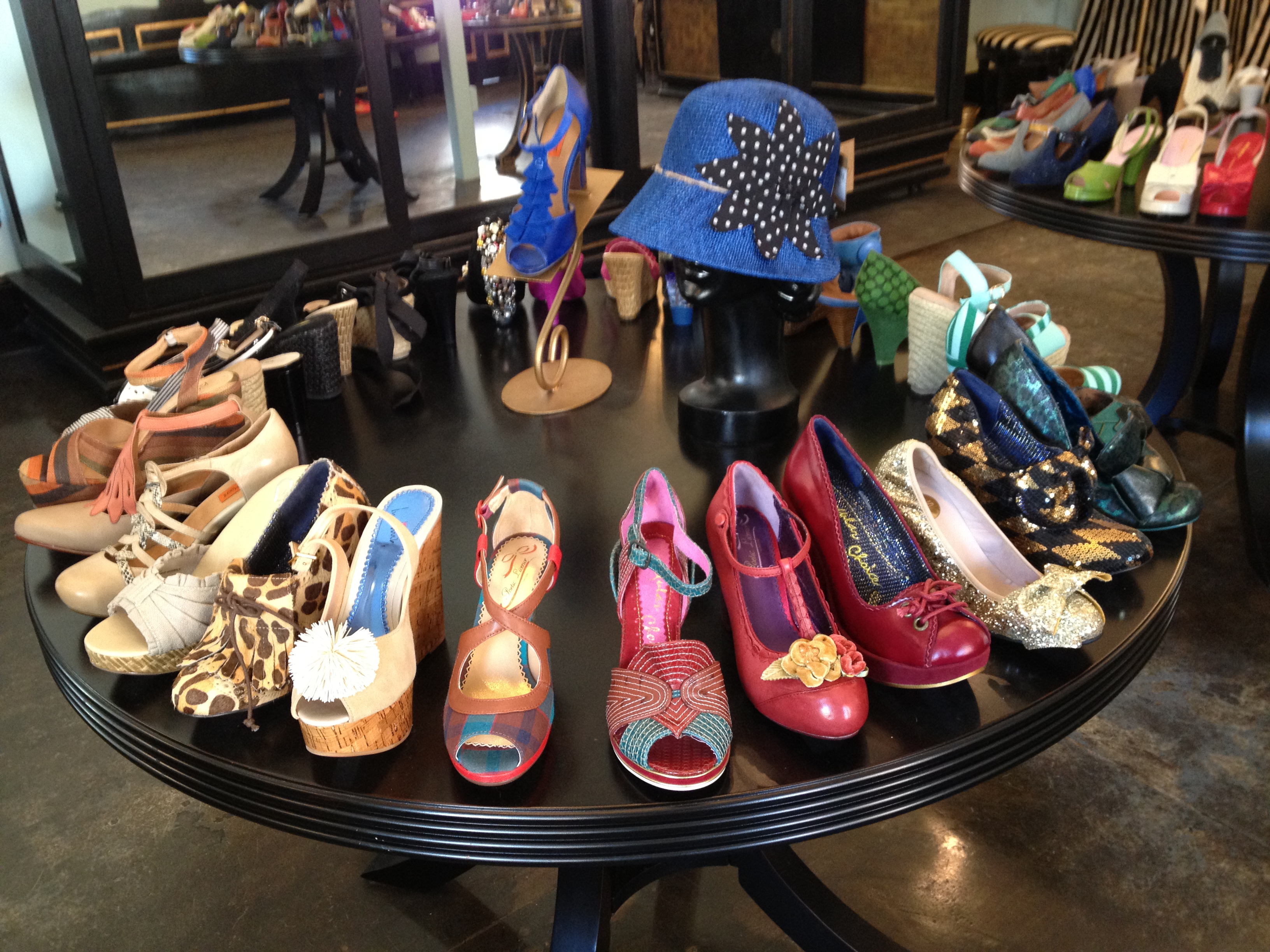 The view of the dress shop from the door - instant meltdown.Knit dresses greet you at the door, with fantastic necklacesLovely pink and gray - dress from the new bridal collectionThe beaded detail on the silk Sadie dressThe jewelry counter, with fantastic fakeliteAdorable flats!Rachel and the domain of delectable shoesA functional use of mantel space 🙂