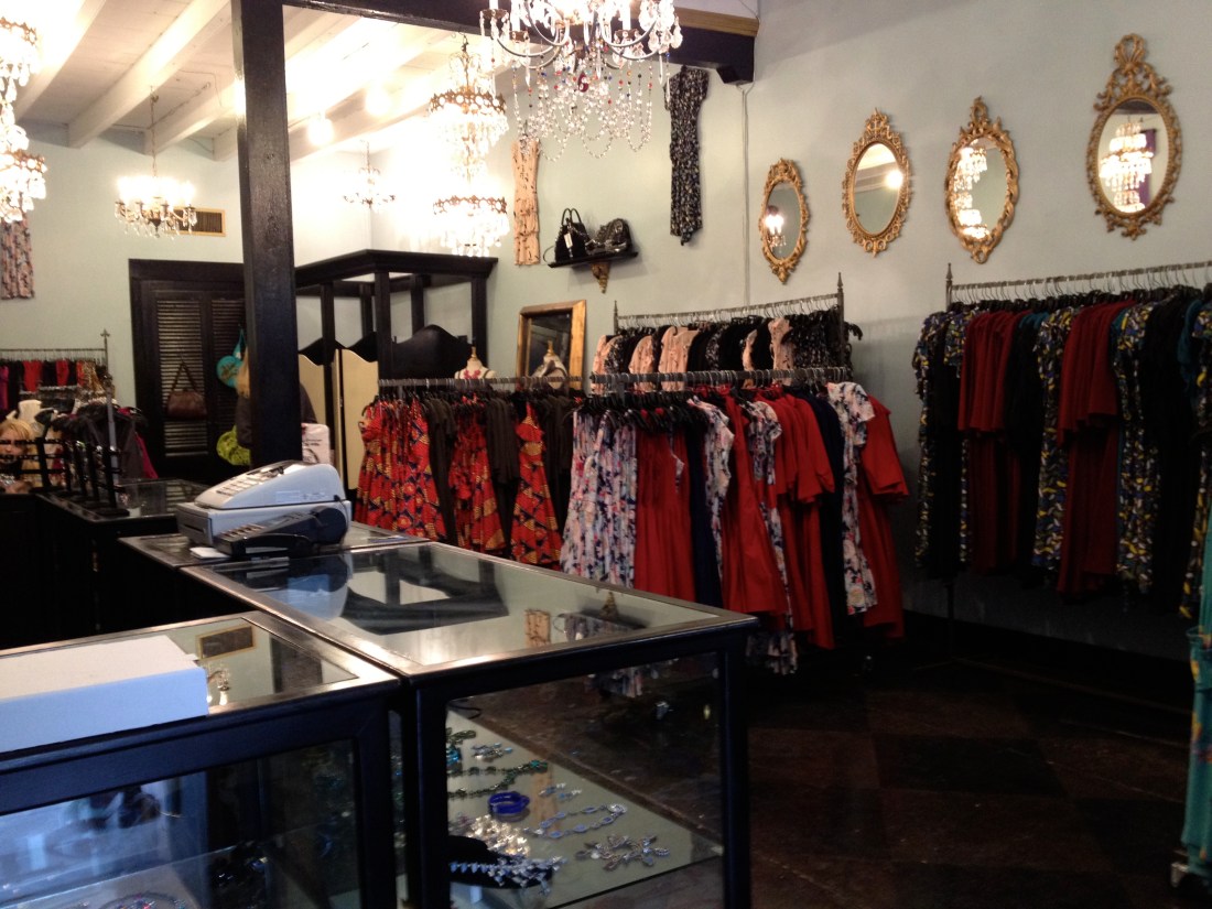 This past weekend was my first trip to New Orleans, LA, which meant I was going to get a double dose of nerdy obsessive bliss – trad jazz and Trashy Diva. The occasion was to celebrate, bachelorette style, the upcoming nuptials of my dear friend Danielle McQueen, who also loves good music and beautiful dresses. On our Saturday in New Orleans the bride and bridesmaids headed over to Chartres Street to shop…